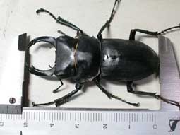 「まだ活動していることは確認できたからもう帰ろう」と思って視線をずらした瞬間、何やらクワガタらしきものが見えました。最初は「ミヤマかな」と思ったのですが、例の望遠鏡で見てみると泥だらけの大きなヒメオオです。「大きい!これは採るしかないゾ」と思ったものの、補注網の採集の成功率50%程度の腕であの垂直に近い状態でついているクワカダの採集がはたしてできるものかどうか…。