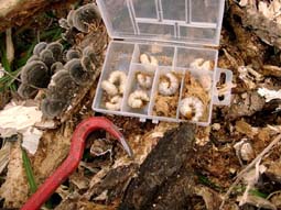 やりました2...初めてヤナギの材から幼虫を割り出しました!(小さな材なのにゴロゴロ出てきました。カワラがいい感じの材でした。)