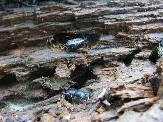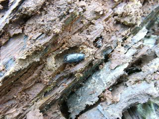 それにしても、ほんとによく死んでるヤツらだ。硬い材をガシガシやったのだが、ここから出てきたのはオサムシと原名ツヤハダの死骸が3つだけ。存在を確認しただけで終わってしまった。けっこうな徒労だ。(-。-;)