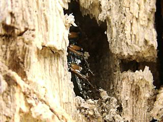 最初のポイントにある台場クヌギの洞に、さっそくコクワを発見した。とてもとても採れる状態ではなかったのだが、ケツだけでコクワとわかる。あっさりと奥に逃げられてしまった。