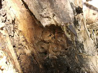 巨大なサクラの材があったが、これは1年ほど早そうだ。周囲に転がっている材などを割ってみるが、出てきたのはコクワ♀の死骸が1個だけだった。(^^;)