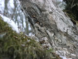雪の斜面に果敢にチャレンジする。雪の中から材を見つけ出す元気はないので、倒木系のクワガタは最初から諦める。狙いはルリ、ホソツヤルリあたりだ。