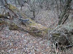 その先に巨大な倒木があったので近寄って見ると無数のルリの産卵痕が付いていました。削ってみようと思った時、どこからか何かの動物のうなり声のような音が聞こえてきました。