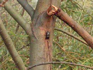 足場の悪い岩場地帯を歩き、広大なポイントに入る。樹液の出ている樹はほとんどなく、クワガタ達は台風で折れた枝や自分で囓った傷口などから滲む樹液などを吸っている。