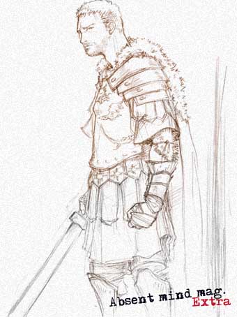 ●マキシマス● Maximus Decimus Meridius 鎧姿が描きたくて描いてみたもの。当然のことながら似せようと思って描いてません。スキャニング後Photoshopでオーバーレイを追加。ということで実物はモノトーンです。時間があればかるく着色してみたいかも・・・ 映画も出演者も気に入りまくった1本。公開中はリピーターしてました。初めて鑑賞した翌日にはこれを描いていたので相当なフィーバーぶり。 |