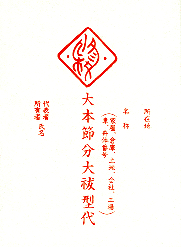 お1人に1枚をご使用下さい。氏名を(住所・年齢は、差し支えない範囲で)ご記入下さい。節分大祭の潔斎神事で、記入された方の代わりにお祓いを受けますので、記入後の人型用紙は体を撫でたり息を吹きかけて、神さまのご守護をお願いされると良いでしょう。 |