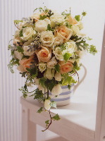 | 数種類のバラを贅沢に使ってエレガントに、甘い香りも魅力 全シーズンOK/約42cm・1万5000円 |
