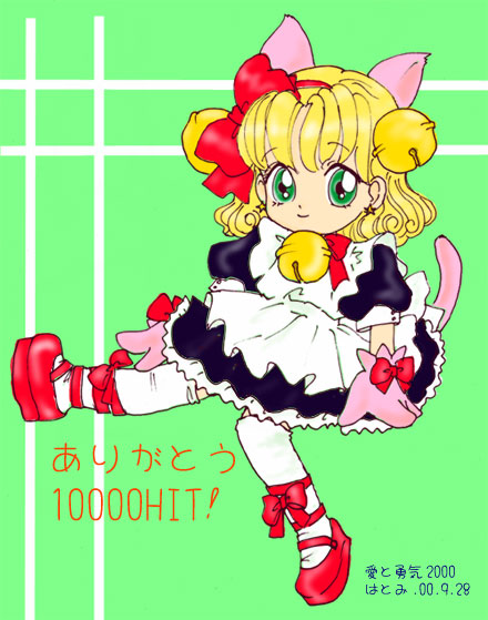 「Di Gi Charat」のでじこをパクって描いたネコ耳メイドアンジェ。 10月中のTOPで、とても評判がよかったもの。 でじこは女王さまじゃなくってお姫さまだけど性格悪代官です。 今度はうさだもぷちこもぴよこも描いてみたいです。 (うさだ=オスカー、ぷちこ=クラヴィス、ぴよこ=ジュリアス???)