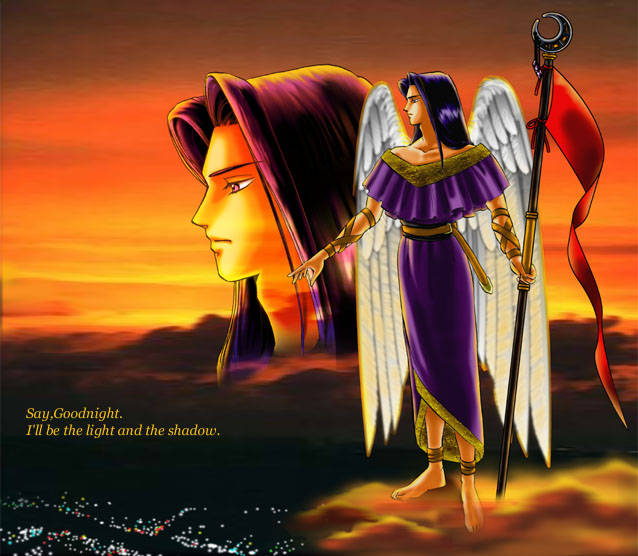 アンジェの方のページしかご覧にならない方は初めてかもしれませんが、ウチのサイトの常連さんのはしみさんが 御自分のサイトのTOP(5/22現在)に使ってらっしゃるイラスト。わがまま言って貰っちゃいました。 実はアンジェリーカーでもなんでもない彼女、でも塩沢さんのファンでした、ということでこれが追悼イラストです。 だからこれは実は闇様のようでいてそうでない…のかも。でも是非アンジェリーカーの皆様に 見ていただきたかったのでこちらに飾らせていただきました。(はとみ)