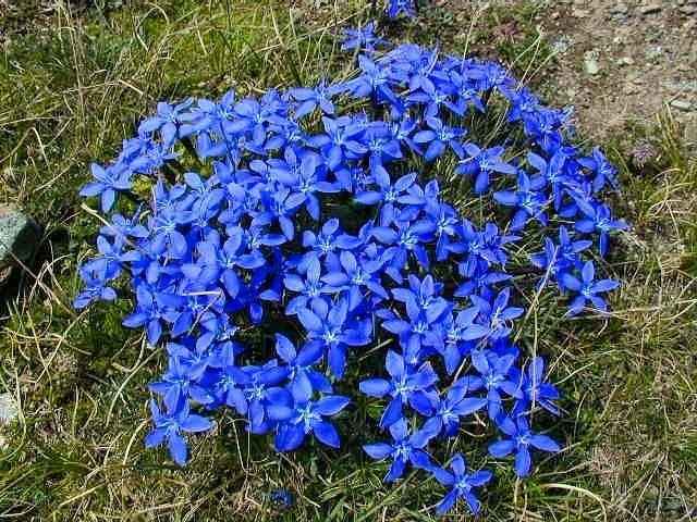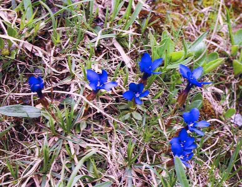 アルプス 3名花の1つ。 日本では見かけない澄んだ紺青色の、可愛い花である。 エンツィアンは一種類だけでなく青色のりんどうのなかまをいうらしい。 あちこちのハイキングコースの草地でよくみかけた。