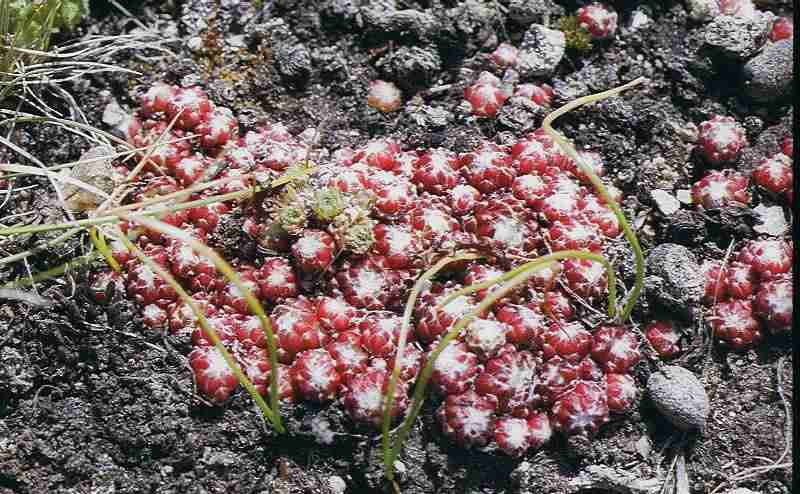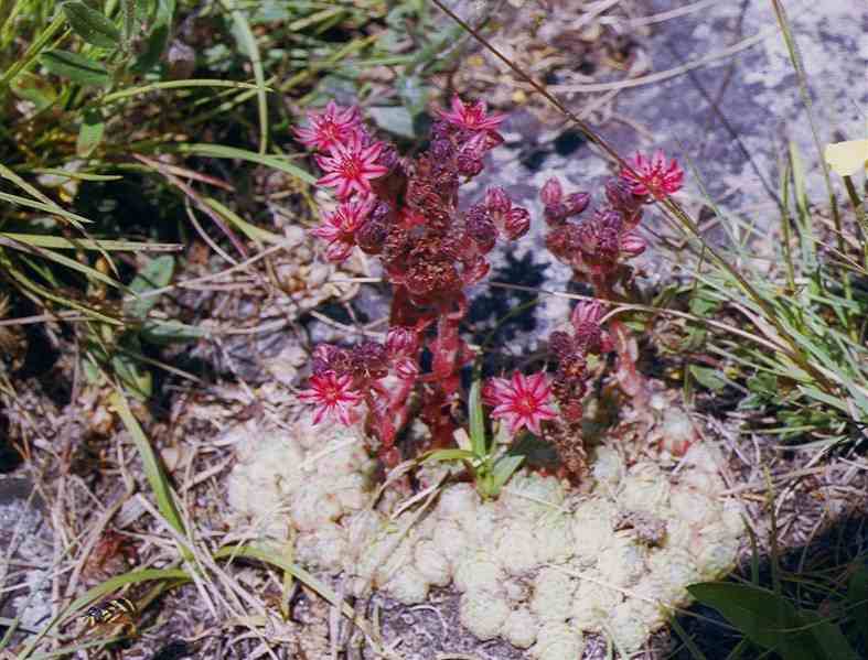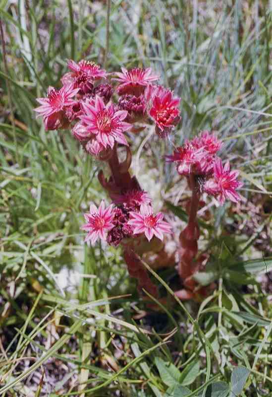 べんけいそう科の植物。右上の写真は未開花株。これから左の写真のような花が咲くとは一寸想像できないが、 右下の写真が証明している。多肉植物の園芸品種のようだ。( フィンデルン村で撮影 )