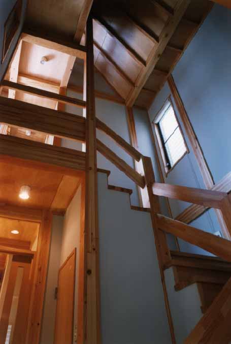 ニング・リビングルーム、玄関や廊下は柱や梁を見せる真壁で造り、外から