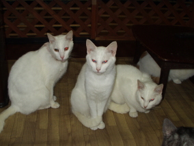 それぞれ青目と金目のオッドアイ。しげるはシャムネコ