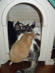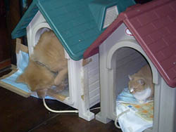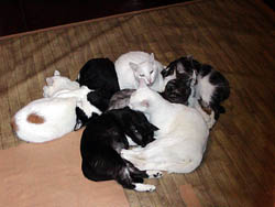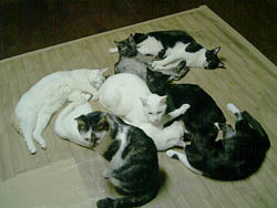 猫小屋に入ってない時はホットカーペットで猫団子状態。一山500円でどなたかいかが?