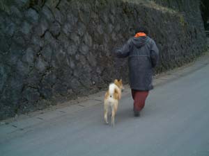 前回来ていただいた時、とにかくひっぱたら叱るでなく、そばへ来た方を誉めることを教わりました。2週間未熟ながらもそのやり方でお散歩しました。気がついたら私の右手首の痛みは治りめぐもぐちゃぐちゃに引っ張ることはなくなってきました。そしてとりあえずめぐは私があっ!と言ったり綱を引くのが合図になってささささっとそばに来るようになりました。次の瞬間また引っ張るのでまだまだですが・・