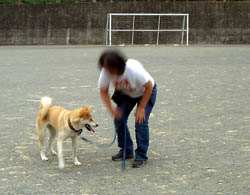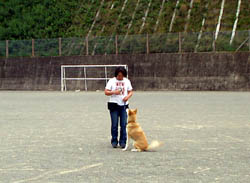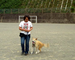 このところめぐが部屋にいる時スワレやマテなどさせてみたりしているのですがリードがない方が言うことを聞くような気がします。先生にお話すると持ってるふりして実はリードをはなしてスワレや後へなどをやってみてくれました。めぐったらできる〜!!!つまり引っ張らないからつながれていないことに本人が気がついていないんですね。それで山に行く時たすきがけにして連れて歩き時間を見計らってはなしてやります。呼べばすぐ来ます、まわりをもうろうろしててもスワレの命令を出すとちゃんとわたしの左側に寄ってきて座るんです!マテがイマイチですが目下練習しています。リードなしでいい子でいられたらもう、何も言うことはありません!!本当にいい子になりました。先生ありがとう!!!今後ともよろしくお願いします!