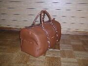 「旅行用の大きなバッグが欲しい」とのリクエストで、軟らかいクローム革で仕立てました。とにかく収容力があります。(前と横にポケットあり。)