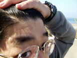 なんと、まこしゃんはお菓子を地元の少年と争って拾おうとして、漁船にゴツン。大きなタンコブを作ってました(爆)。