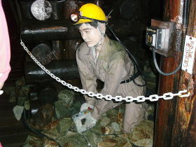 トロッコを下車したあとは、徒歩で鉱内を進みます。よくあるパターンですが、時代ごとの違いをロウ人形で再現してあります。