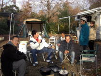 クリスマスのイベントが始まるまでは、サイトで焚き火を囲んでおしゃべり。 話の中味? 下らないことですよ、下らないこと(笑) |
