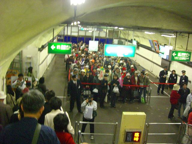 構内はもちろん、トンネルを抜けてダム近くの通路まで行列がのびていました。