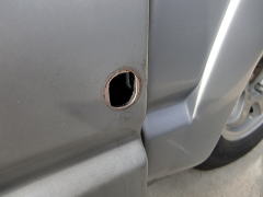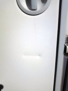 アンダースカート部の蝶番突起にぶつかり、凹んでしまいました。