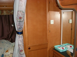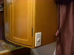 12 リアベット部の天井照明のスイッチ増設 スイッチが本体にしかなく、いちいち手を伸ばさないとON・OFFができなかったので、手元で操作できるようにスイッチを増設しました。慣れている人がやれば、1時間もかからずにできるのでしょうが、配線をどう取り回すかで悩み、あーでもない、こーでもないと4時間もかかりました。(笑) でも、便利になりました。 |