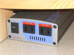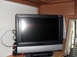1 DVD内臓液晶TV ネット販売で購入しました。画面サイズは11インチとやや小ぶりですが、車内での使用には十分です。DVDが内蔵されているので、電源が1系統で済みます。TVチューナーはアナログですが、デジタルにはもうちょっと安くなってから変えようと思います。 TV台はDIYで半円形の板を買ってきて取り付けました。 |