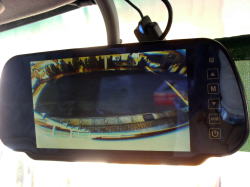 8 バックミラーモニター設置 ヤフオクで購入しました。バックアイカメラの電源をリバース時から常時接続にして、常に写るようにしました。 ミラーも兼ねている製品なので昼間は反射して見づらい面もありますが、ナビ画面と独立させたので便利です。 |