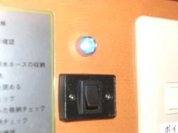 9 パイロットランプ設置 エントランス上部にある操作パネルの12V電源スイッチの状況がよく分からないため、ON時に点灯するようにパイロットランプを取り付けました。これで消し忘れもなくなります。 |