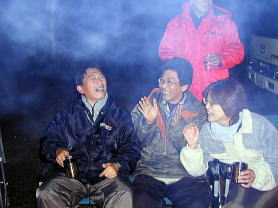 | 宮ちゃん、川ちゃん何がそんなに嬉しいの? | 口の悪いツートップです(爆) | 朝も寒いから焚き火から離れられない! |