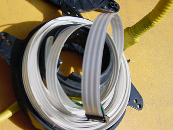コイルは何カ所か折れ曲がり切断されている。そ〜言えば、ステアリング交換の際、コイルの注意書きに「3回(?)以上回すな」って書いてあったけど、これを見れば納得!