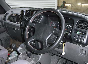 こちらが完成写真。ステアリングの奥行きもノーマルと変わらず、なかなかいい感じだ。コンソール側は、そのうち小物入れでも作ることにしよう。