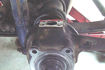 ハブシール(ナックルの裏側)のボルトを緩め、張り付いているシールを剥がす。キングピンを抜くとナックルがバラバラになる。