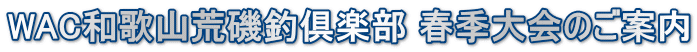 2023年度WAC春季大会ご案内 行事予定表の通り4月23日(日)春季大会を和歌山県田辺の磯で開催致します。 多数ご参加の程よろしくお願致します。 場 所・・・・・和歌山県田辺の磯 渡 船・・・・・黒田渡船(0739-25-1303) 出 船・・・・・5時頃 (磯上がり順位の抽選は無しとします。) 審 査・・・・・14時30分〜15時 〆切り・・・・・4/16(渡船等手配がありますので厳守願います。) その他・・・・・各グル−プ役員の方は会員の皆様に連絡・取り纏め宜しくお願い致します。 弁当はありませんので各自で用意して下さい。 荒天の場合は中止となり順延は無しとします。 |