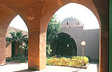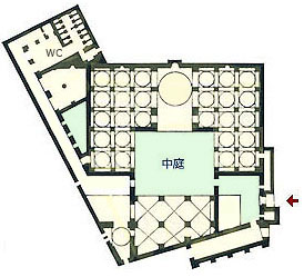 イスラーム建築の原理というのは 近代建築のそれに近い と何度も述べたように、これも 素材の正直な使い方による小ドーム屋根を連続させた、構造表現主義の 裸の近代建築である。わずかに ドーム下部のスキンチと 中庭に面する開口部の格子(ムシャラビーヤ)が 装飾の役割を果たしている のみである。このモスクは アフリカと中東における、新しい 地区モスクの手本となった。ファティが果たしたのは、荒廃した国土と 混乱した文明における、イスラームの建築伝統の 復興と近代化だったと言えよう。