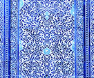 A ウマイヤ朝の次の アッバース朝では 煉瓦の積み方自体で 模様をつくりましたが、11世紀以降、ペルシアのセルジューク朝で 彩釉タイルが多用されるようになると、煉瓦の上にスタッコを塗って、カラフルなモザイク・タイルで覆うようになったんです。アルハンブラ宮殿も、大部分が煉瓦造で、その上に 装飾が ほどこされています。
