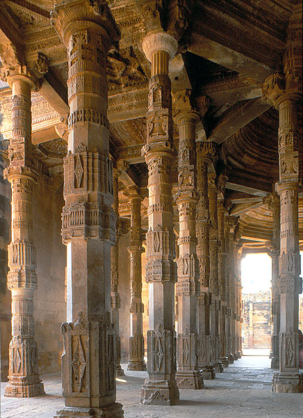 アラブ型モスク アラーイ・ディン・カ・ジョンプラ・モスク、13世紀、アジュメール(インド) インドの 最初期のモスクは、アラブ型の 列柱ホール・モスク だった。 ヒンドゥ寺院やジャイナ寺院を取り壊し、その部材を用いて建てた。