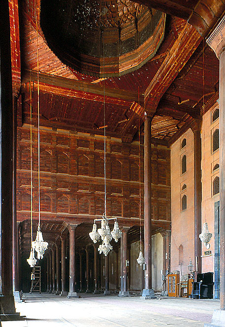 金曜モスク 内部、1674年。 電柱のような太いヒマラヤ杉の柱に、