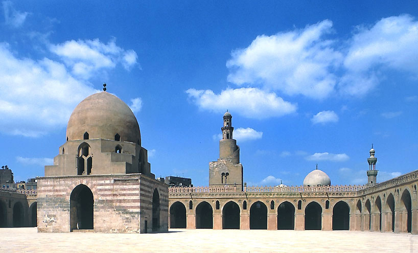 イブン・トゥールーン・モスクの、90m x 90mの広大な中庭、カイロ