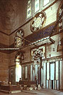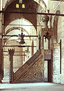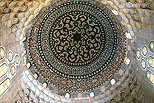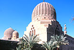 初期のアラブ型列柱ホールと 最も異なるのは、大小さまざまなドーム屋根が 組み込まれていることだろう。ここでは 木材がまったく用いられず、列柱ホールの屋根でさえ、レンガ造の小ドーム屋根をつらねている。背の高い墓室の内部空間は 最も装飾的につくられ、大理石の寄木細工による カラフルなミフラーブまわりや、ステンドグラスの入った ゴチック風の3連窓、そしてドーム天井の有機的な装飾パターンが 強い印象を与える。