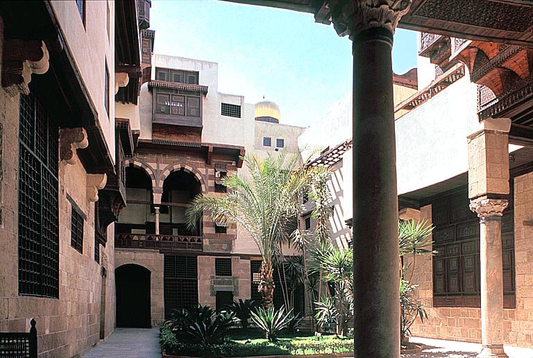 スハイミー邸の中庭。 正面 2階の 2連アーチのある所が「マクアド」。