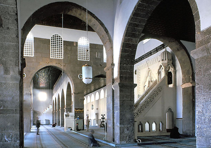 The extremely wide oblong worship hall of the Ulu Cami (Great Mosque) in Diyarbakir.