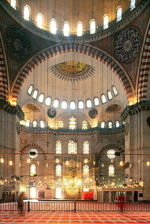 スレイマニエの礼拝室内部。 正面がキブラ壁とミフラーブ