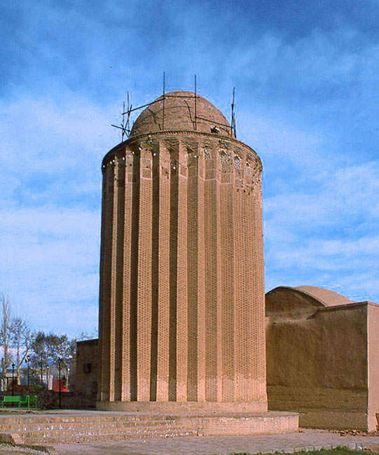 ビスターム(バスターム)の塔墓 14世紀初頭 この塔墓は イル・ハーン朝の1313年に、金曜モスクの隣に建てられた。 これも カーブース廟と同タイプの塔墓で、25角形の星型プランをしている。 入口はモスク内にある。