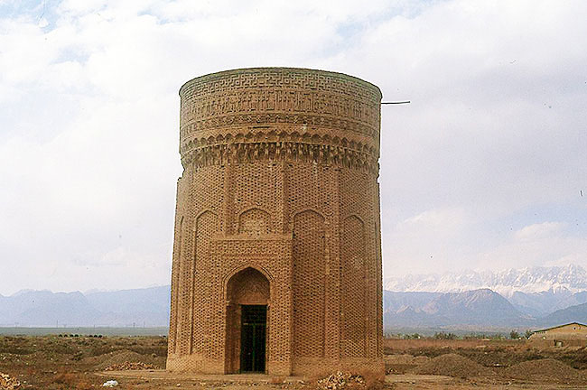 ダームガーンの近郊、メフマンドゥーストの荒地に建つ塔墓、マスム・ザーデ廟 イル・ハーン朝の1096年の建立で、12角形の浅い星型プラン。 失われた屋根がカーブース廟のように 円錐形であれば、 かなりプロポーションの良い塔墓であったろう。