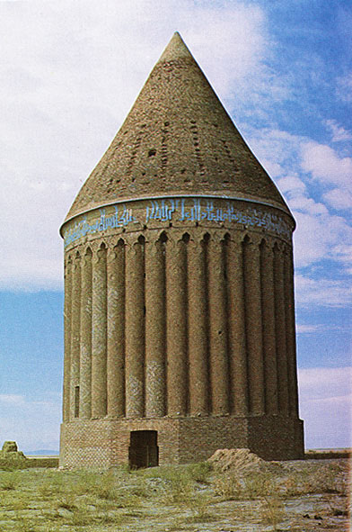 ラードカーンの塔墓 イル・ハーン朝の13世紀末 (From "IRAN 1, Islamic Architecture" by Antony Hut & Leonard Harrow, 1977, Scorpion Publications, London) 円形プランの壁面いっぱいに円形リブが並び、円錐屋根を戴く構成は、 原理的にはカーブース廟の小型版である。