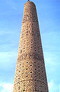 On the side of the mosque are traces of a square minaret now lost, the surface of which also must have been austere without ornamentation. After it collapsed, a new round shaped minaret was constructed in 1026 and still exists. Unlike the mosque, the architect of that age gave it geometric patterns, using the device of piling bricks in various ways and chiseled calligraphic passages from the gQurfanh (Koran) in Arabic as ornaments.