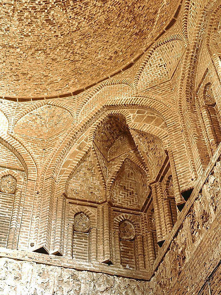 A corner squinch that transitions the square room to the round dome in the Friday Mosque of Zavareh The complicated formation of bricks also carries out a decorative role based on the principle of arch.