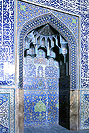 Faience Tile Panel and Winding Passage In spite of that, this mosque does not fall into boring simplicity with exclusive geometric symmetry; rather it has an unexpected dramatic composition of inner spaces, which displays the genius of the architect who designed this mosque, Ustad Mohammad Reza. I cannot forget the astonishment I got when visiting this mosque for the first time, twenty-four years ago.